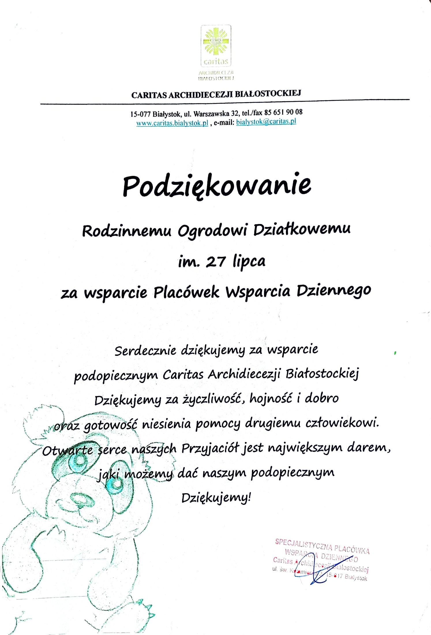 Poniżej podziękowania jakie otrzymał Zarząd ogrodu: